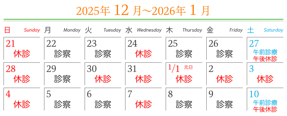 診療最終日は2025年12月29日(月)